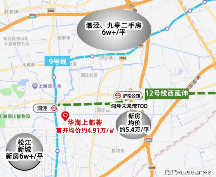 松江新城新房6万+/㎡,泗泾&九亭作为区域内承接市区的重要板块,好一点的二手房都上了6万+/㎡,居高不下。