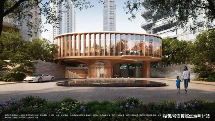 主入口采用高端度假酒店式大门设计,以奢华水景落客庭院,打造尊崇归家体验