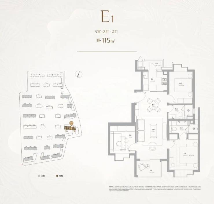 115㎡全能高配户型,三房两卫,高空间利用率。