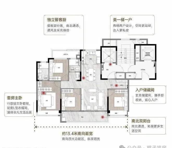 约13.4m超大面宽采光,更享三居室朝南。