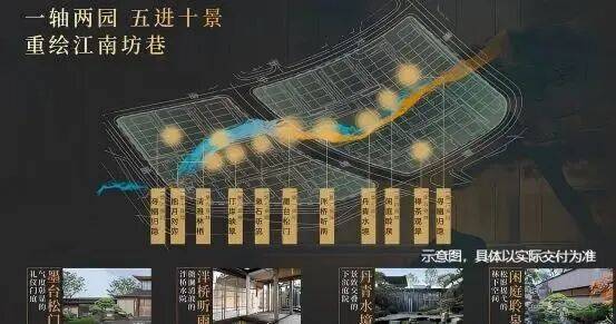 项目立面通过多种新中式元素构筑东方建筑美学,让建筑本身温润厚重从而历久弥新。园林设计上依据“一轴两园 五进十景”规划,以豫园造景手法为基础,提取楼阁、折桥、墨池等中式元素,构建立体山水,重绘江南坊巷。项目配有隐奢园林双会所,涵盖恒温泳池、网红健身房、总裁私宴厅、雅致书吧等7大主题,重塑江南望族隐逸生活。