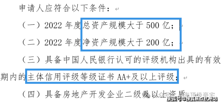 在意向方遴选条件上,除了常规的对企业的总资产规模、净资产规模、主体信用,房地产开发资质等做了要求之外: