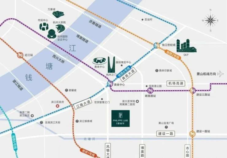 3⃣周边配套完善:3公里内覆盖滨江银泰、滨江天街、星光大道、滨江TOD(在建)等多商圈大型商圈,交通便利:风情大道,江南大道,市心路等,近揽主轴;直距地铁15号线(在建)约1.5公里,直距地铁7号线约1公里