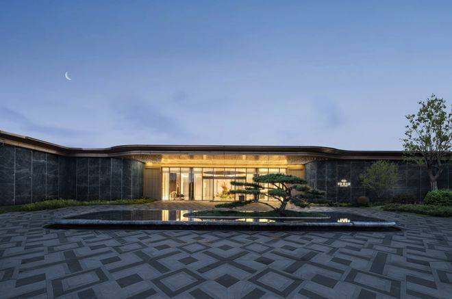 青云府门庭宽约33米,不仅搭配价值6位数的黑松,门口还做了华丽的劳斯莱斯同款星空顶,大堂内部用到了奢石铺装↓