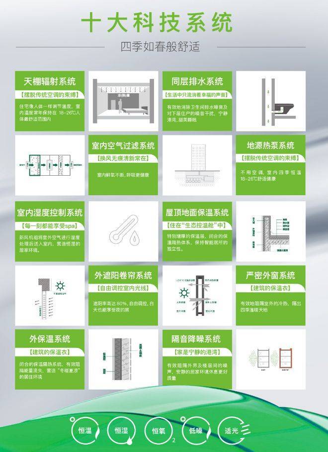 作为太湖度假区首个“绿建二星”住宅,太湖朗郡以“三恒”定制科技大宅,直击当下人居痛点,实现四季恒温、恒湿、恒氧、低噪、适光。