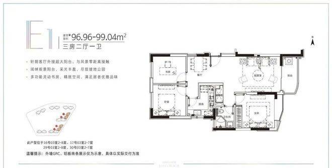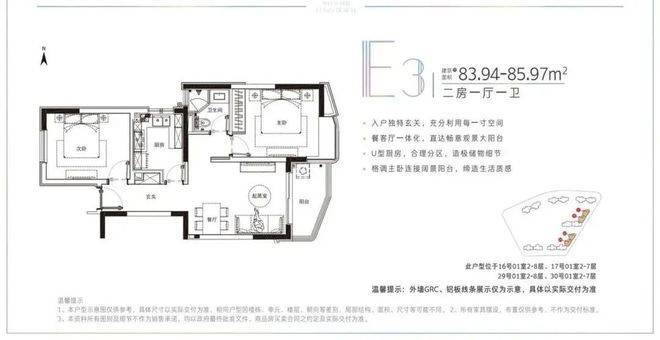 建面约78-91.22平米的小户型,两房两厅一卫的格局,非常适合年轻刚需家庭上车。