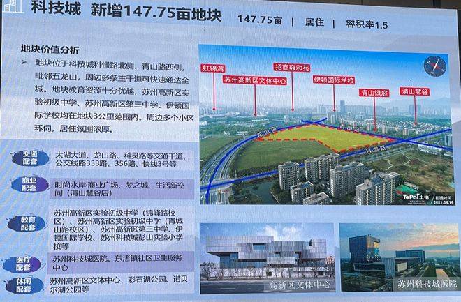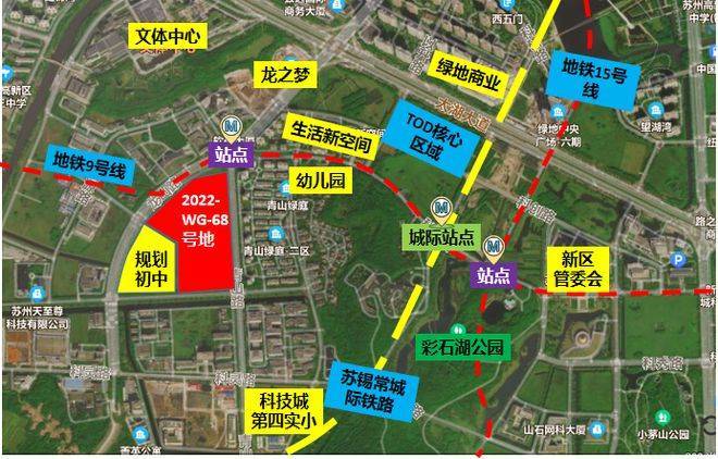 在政府的批文里,这块区域编号CP320505-2023-02-03,名字更为引人注意——科技城综合商业东片区(也就是说还有西片区)。四至范围为:东至锦峰路,南至彩石湖公园,西至稼先路,北至太湖大道。