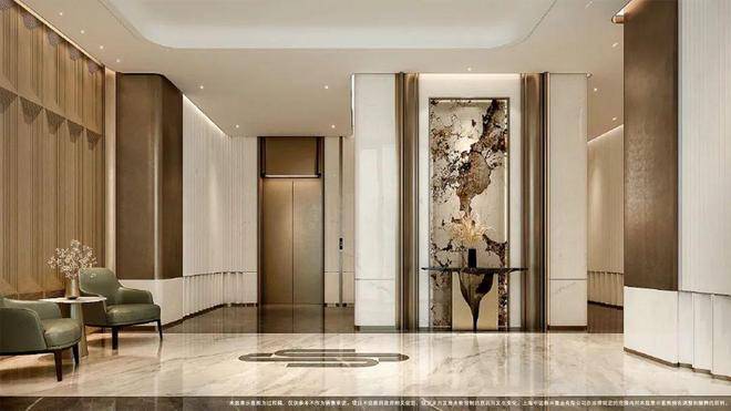 项目一楼设计星级入户大堂,挑高穹顶之下,天然石材与金属线条交织出当代艺术馆般的恢弘气度。这里不仅是归家的第一重仪仗,更是名流圈层的社交艺术厅,精致的皮革沙发休憩区,也能成为您会客洽谈的隐贵主场。