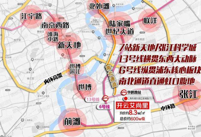 项目距离轨交13号线华鹏路站直线距离约600米,7站直达新天地、6站直达张江科学城,13号线是横向大动脉,业主进站直达浦西新天地、淮海路及南京西路等重点商圈;一站换乘6号线,作为浦东纵向大动脉,链接前滩和世纪大道!