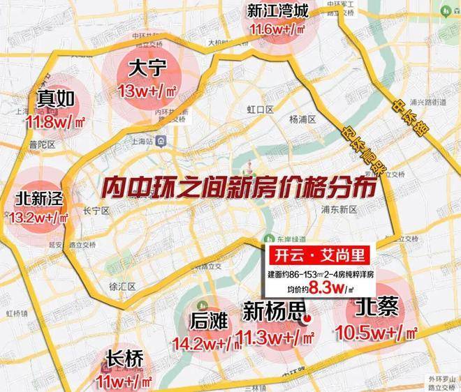 真如板块已突破11.8w/㎡,北新泾维持在13.2w+/㎡,大宁奔向13w+/㎡,长桥、新江湾城早已站上11w+/㎡,而后滩等板块更是动辄14.2w+/㎡甚至更高……当下内中环新房普遍均价已稳站11-14w/㎡高位,甚至连外环外热门板块也已站稳8w+/㎡关口。