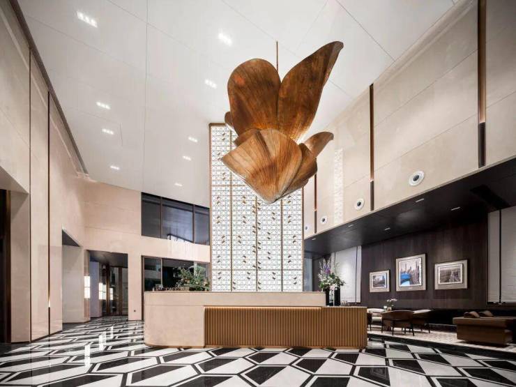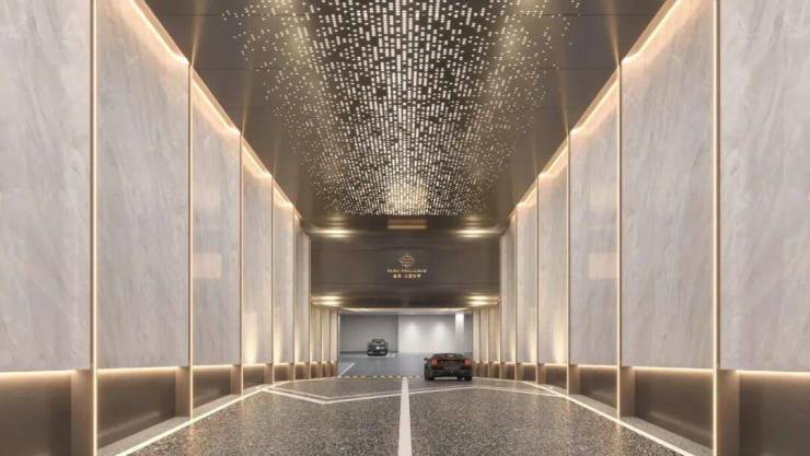 据说地下车库、地下入户大堂同样精工交付,星空吊顶入口,车行道和立柱全是石材,仪式感会很足。