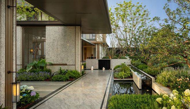 走进社区,你会发现保利真的很舍得做景观。约3000㎡的中央景观花园,还有**下沉式会所**(含恒温泳池、健身舱),以及超百米的风雨连廊。
