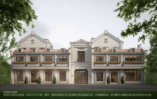 建筑立面通过明确的基座、主体与檐部层次,再现了经典新古典主义的庄重比例。