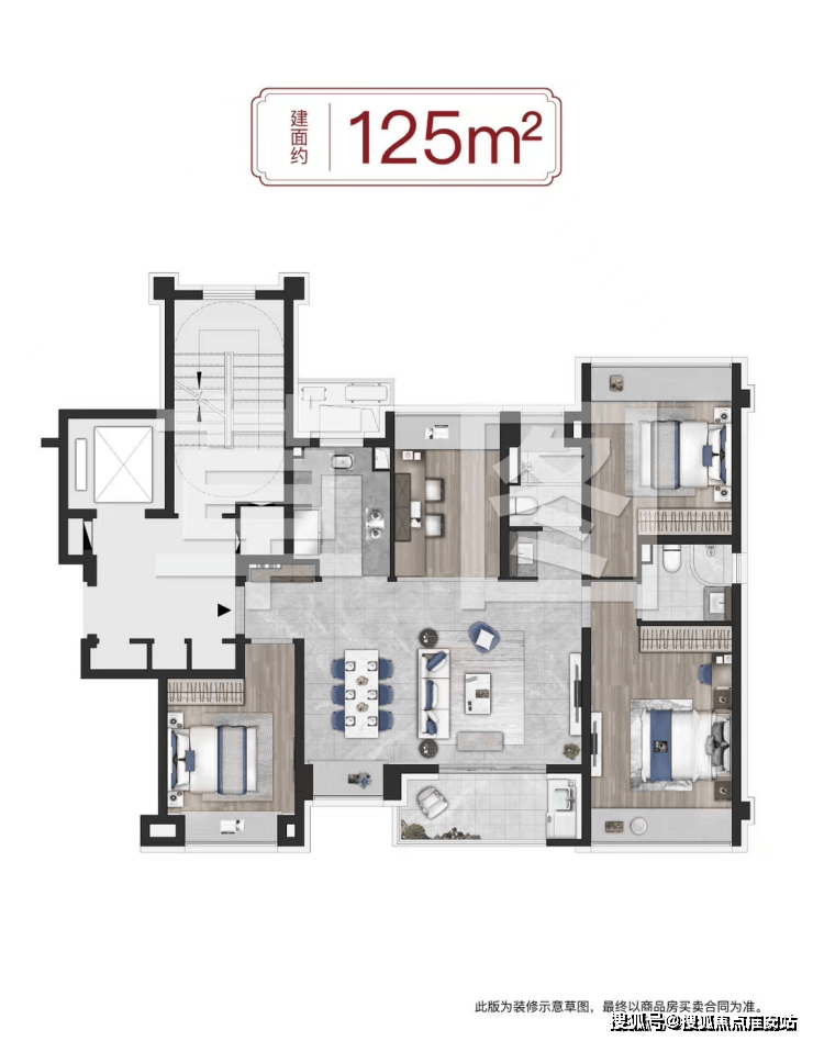 约125㎡4房2卫户型是约99㎡的升级版,四房更能保障业主的全生命周期需求。
