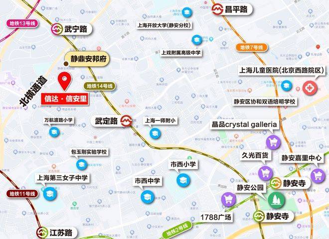 交通配套方面:项目还有着高效的出行系统,增强了通达性。13、14号线都步行可达,武宁路站和武定路站都步行约500米左右。1公里范围内,地铁线路就更丰富了,2号线、7号线的昌平路、隆德路、江苏路、静安寺等市中心地铁站都可步行到达。