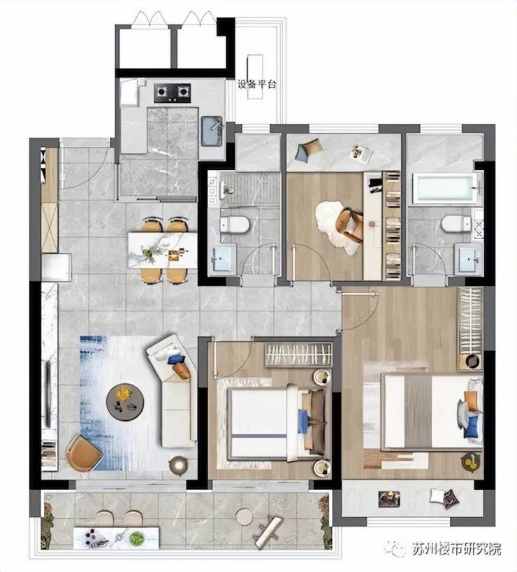 姑苏区平江新城位于苏州市姑苏区北部,南邻老城核心,区域被定位为居住及配套功能为主的现代化生活片区,居住氛围纯粹,区位优势明显,稀缺价值凸显。片区内市级、区级政府机关集中,拥有区域级商业万达广场等高端商务集聚区,轨交-高铁组合交通保障片区活力。