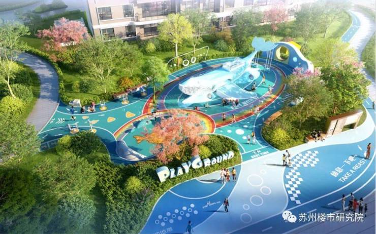 观棠9境:社区景观配套,内含林荫书吧、客谈水廊、健身跑道、老年康养空间、青年康体空间、“鲲”主题儿童游乐中心等