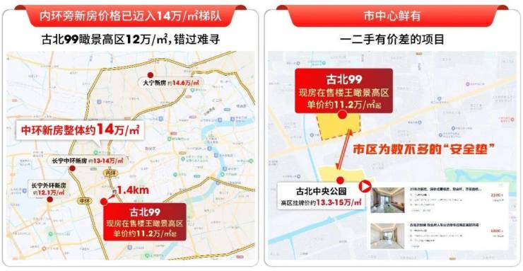 古北99直线距内环仅约1.4公里,11.2万/㎡起堪称内环旁“洼地”。