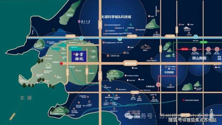 香雪雅院位于藏福西路与福锦路交汇处西北侧,北接科技城,身处风景区,北侧毗邻片区核心苏州科技城,距离太湖国家旅游度假区仅5公里之遥,旨在建设光福镇高品质人文住区。