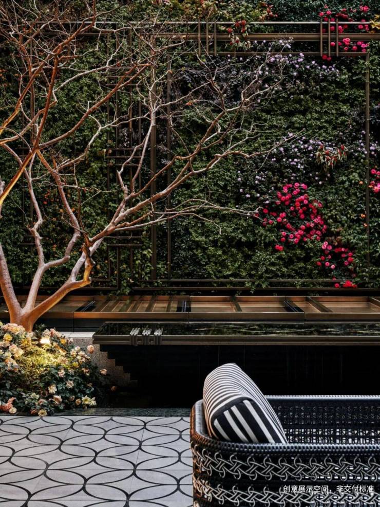 项目拥有约1.1的超低建筑容积率,社区狮子景观轴线串联海派生活的原味;提取经典洋房的场景植入社区景观打造,将丁香、紫藤,蔷薇,紫薇……等八种主题花卉,传香入园,串联巷弄8个花园,组成U型景观带,围合一座弘安大花园,叠影海派繁花巷弄里。