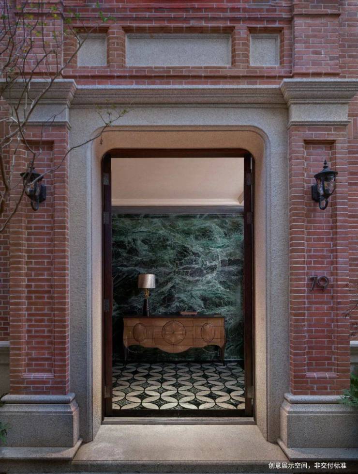 如今,弘安故地旧貌焕新檐,门牌79号传家500私人大宅,清水红砖干挂门柱与金沙黄石料的门框经典组合,重开当代海派家族的门庭,长方形的门楣上,将题写谁的福字匾额,推开天马纹样的绿柄桑实木雕刻对开门扇,又将传说谁家的掌故。