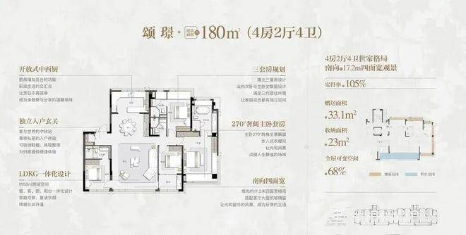 洋房产品也非常可圈可点,户型140㎡起步,全部都是大四房,得房率非常高。
