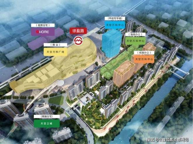 区位与配套方面,项目的交通便利性是核心亮点之一。其与17号线徐泾北城站直线距离仅约80-160米,目前虽受河流阻隔需绕行,步行约1.5公里,但项目东北侧已规划建设专用人行桥,未来将直通地铁站二楼,届时可实现“正地铁房”的便捷接驳,大幅提升通勤效率。借助17号线,