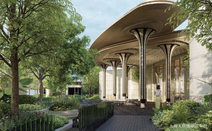 上海象屿天宸雅颂项目,以森林为灵感,宏观提取叶脉形态,表现自然的脉络与流动;同时深入微观的细胞视角,提取其纹理与符号,以几何纹理与结构逻辑表达自然的秩序与美学,塑造出了“花瓣状的母题造型”,打造兼具流线感与秩序感的视觉艺术体验。