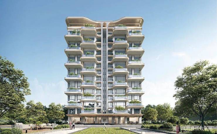 厦门凤鸣雅颂项目则将四代住宅立面设计巧妙融入自然生长的内核。建筑外立面的弧形倒角如藤蔓般自基座向上舒展,柔和的曲线既消解传统棱角的冷硬感,在曲面与光影的交织中演绎植物破土而出的生命张力。