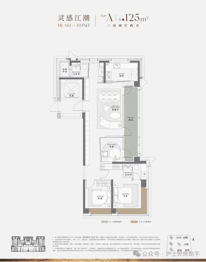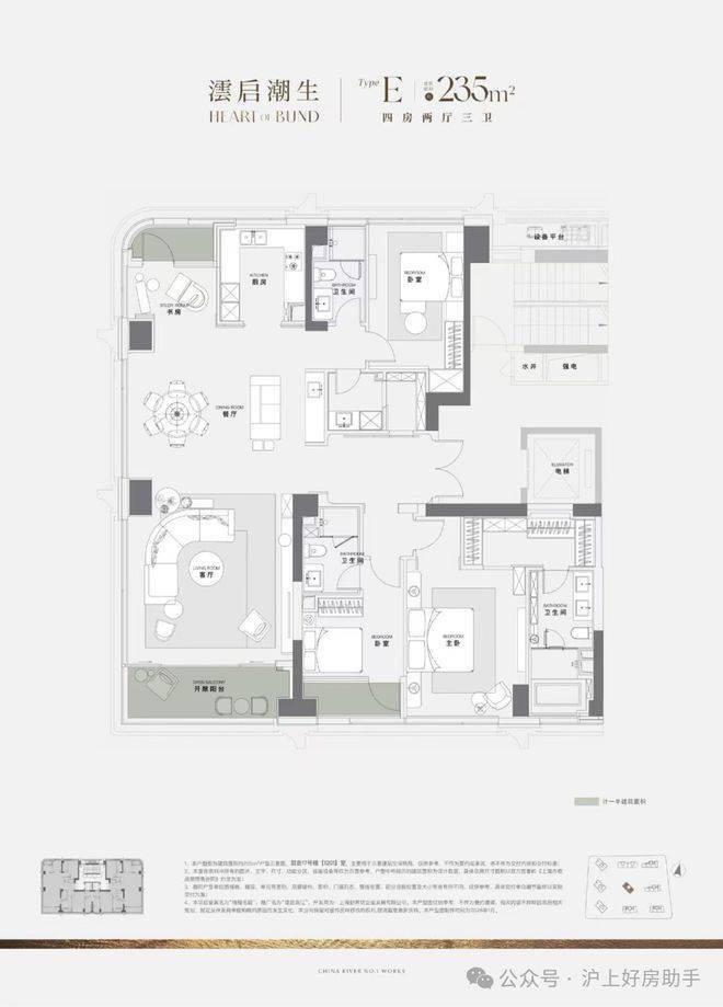 过去10年上海一线滨江住宅,大户型是绝对主流,120㎡级3房产品从未出现。澐启滨江是因2021年后滩九宫格有中小套型指标要求,得以推出120㎡级产品。