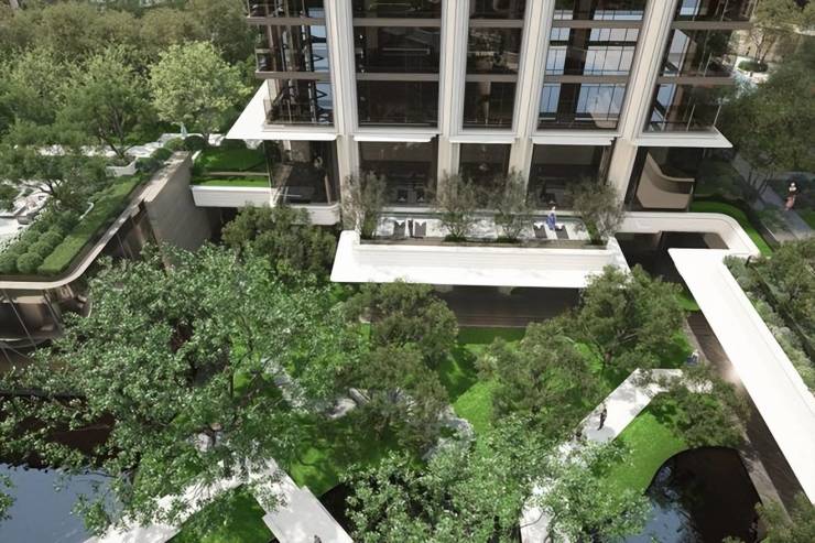 建筑与江共生,成为湾心的时代地标;临江楼栋经过精密计算定制化 32.5 °偏转,雕琢出视野的最大界面,将黄浦江的奔涌、城市的天际线与生态绿意尽收眼底,让「看江」 升维为「恒藏生活」 的终极体验。