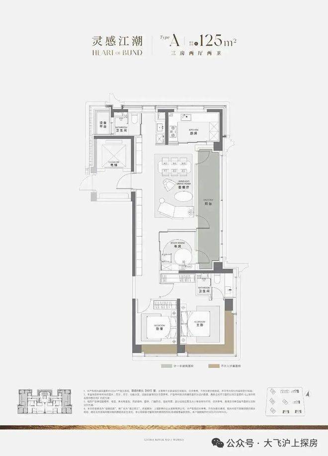 125㎡户型:首创6米南向横厅,边户可拓展至9米面宽,配独立岛台及20m³收纳系统。