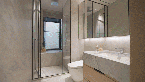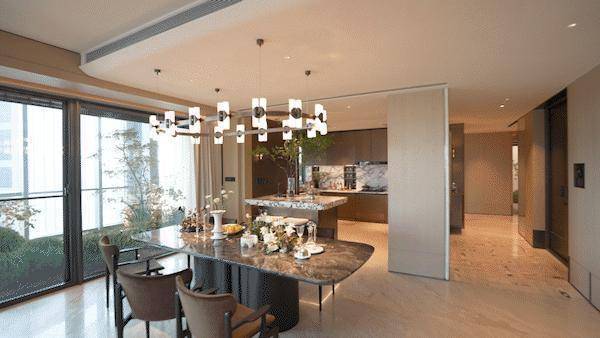 整体设计上更是暗藏巧思,通过石材、金属等材质巧妙搭配,在现代设计中融入东方韵味,营造出既符合国际审美又充满文化归属感的“摩登东方”居住氛围。
