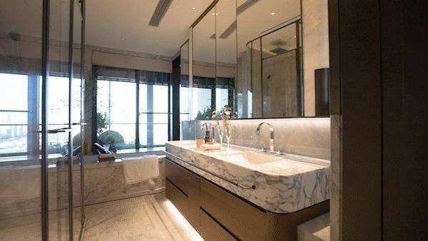 三个卧室都有奢侈尺度,主卧堪称总统套房级的私享空间,南向全落地窗直面江景,将临窗浴缸融入设计,让泡澡时光也能私享江景。