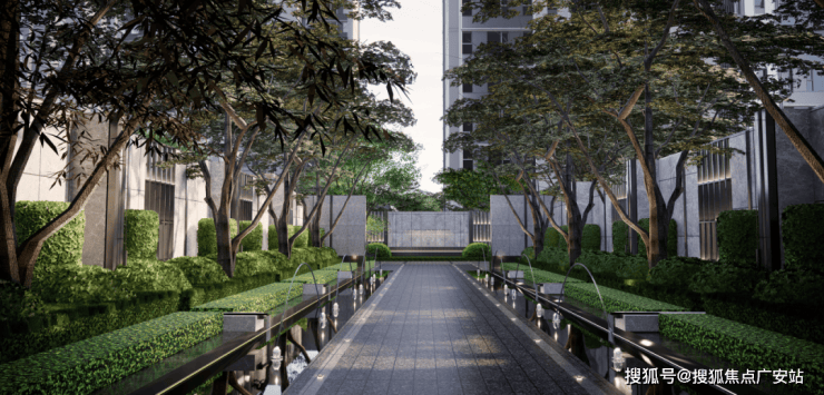 坐落于社区中轴线正中的央景楼座,是园林景观最为集中、生活最为静谧的区域。