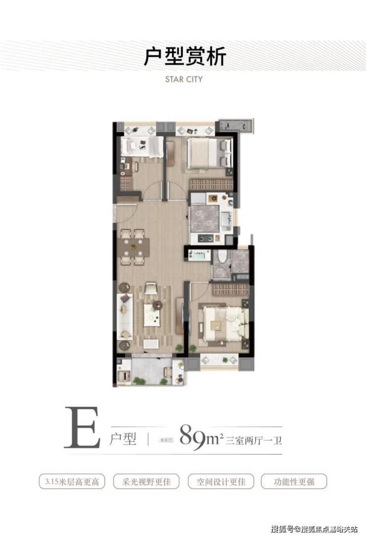 ·约89㎡户型:大虹桥范围不到90㎡的户型大部分都只做到2房,灿耀星城该面积段实现3房功能性,让自住客户一步到位,也让该产品进入二手市场后具备降维打击的优势!