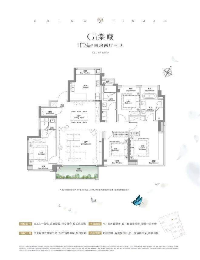 户型涵盖建面约85-178㎡的2-5房,采用LDKB一体化设计、270度全景飘窗等创新空间布局。