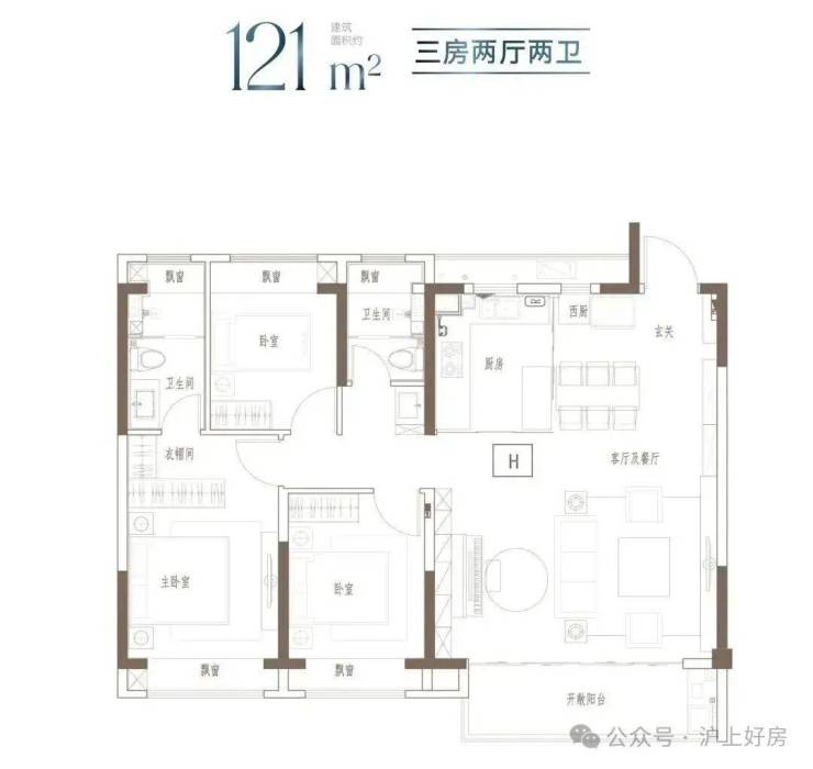 户型特点:阳光三房,同等面积更多功能;宽幅南向观景阳台,把居住变成风景;步入式衣帽间,给予生活更多从容。
