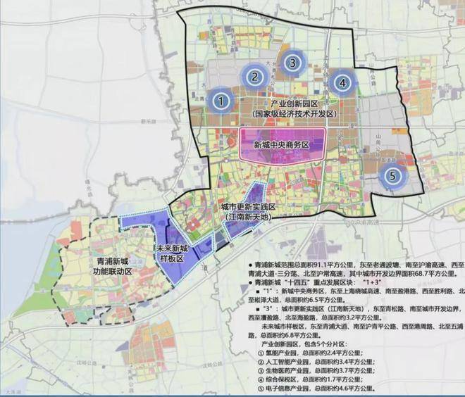 “3”包括青浦老城厢及周边的“城市更新实践区(江南新天地)”、青浦大道以西及三分荡地区的“未来新城样板区”以及工业园区产业基地内的“产业创新园区”。