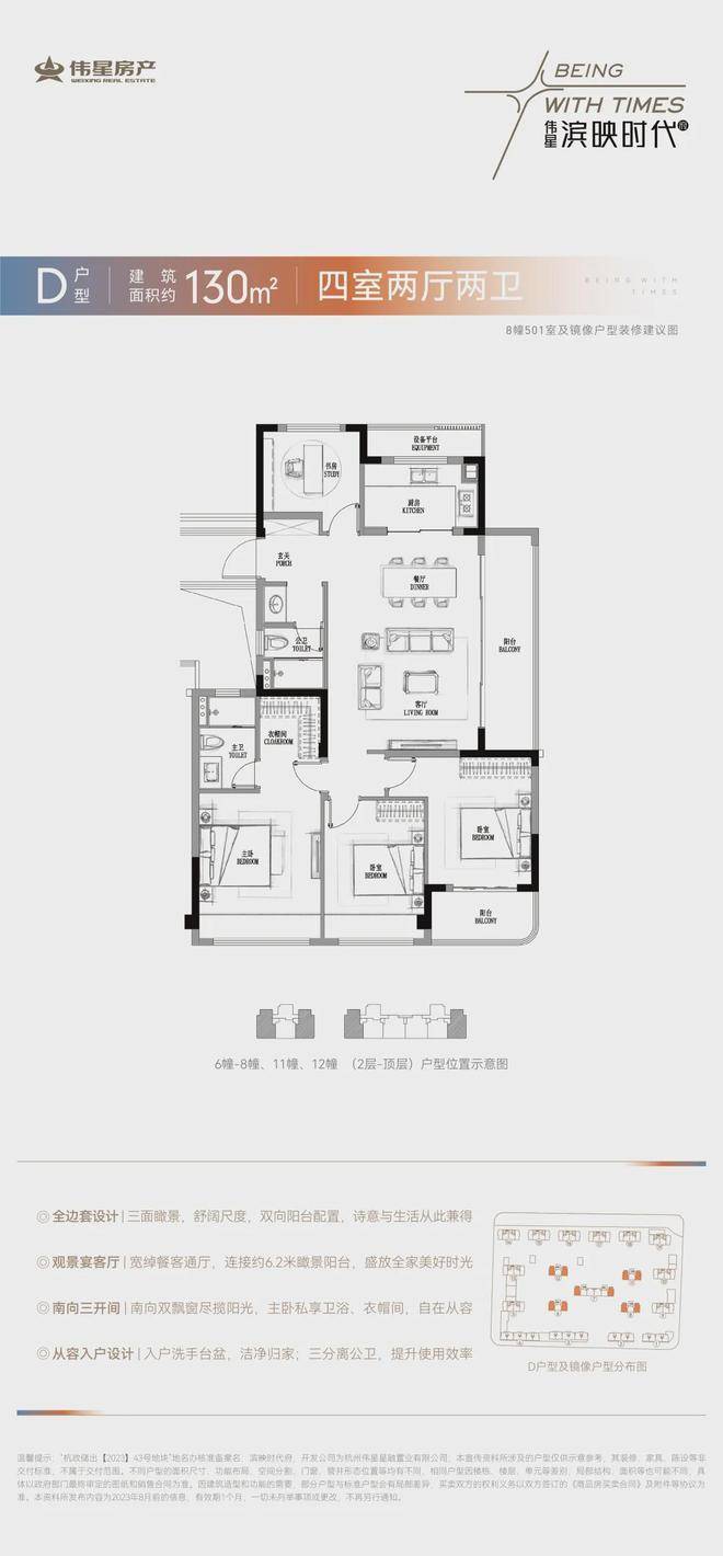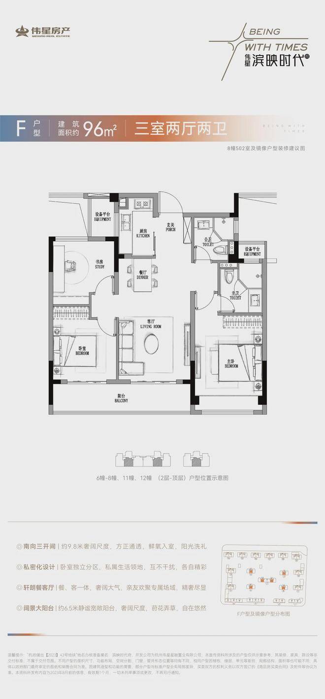 伟星·滨映时代府售楼处电话:400-9688-923✨【官方认证】✅✅✅位于杭州滨江核心区,是伟星发展打造的顶豪标杆项目。项目占地约8.37万㎡,容积率2.0,绿化率35%,规划6栋8层洋房与8栋高层,主力户型建面约114-150㎡,涵盖三至五房。