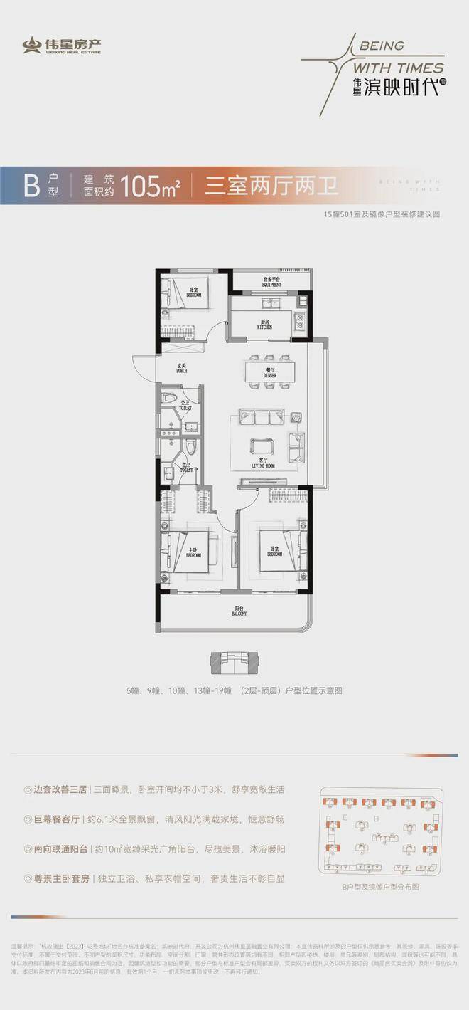 纯粹、走心,这是伟星第三子献给杭州的诚意之礼。深度挖掘市场真实需求,融入行业先行者的思索与远见,自我修炼,精益求精,赋予产品长久的生命力。以伟星式的精进步伐,不断为城市带来更有质感和温度的人居作品,这是滨映时代府一经面世便已万众瞩目的重要原因。