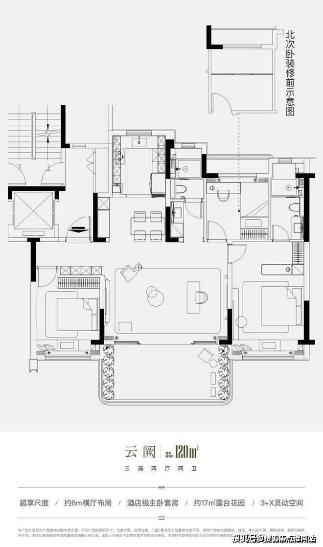 云阙户型建筑面积约120㎡三房两厅两卫