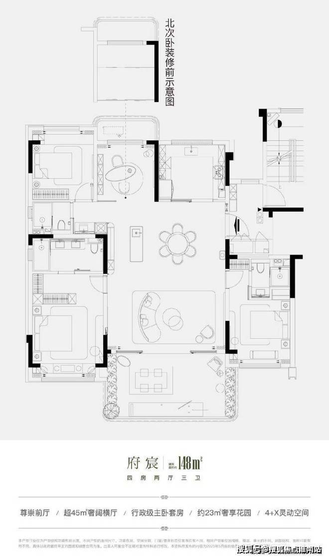 府宸户型建筑面积约148㎡四房两厅三卫