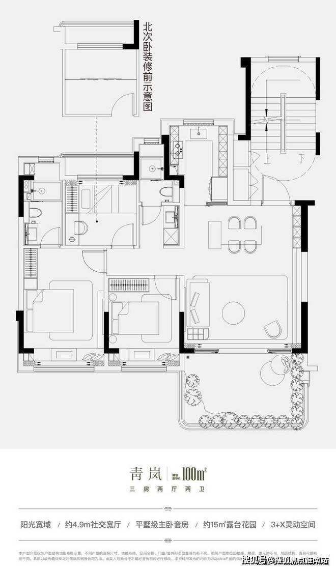 青岚户型建筑面积约100㎡三房两厅两卫
