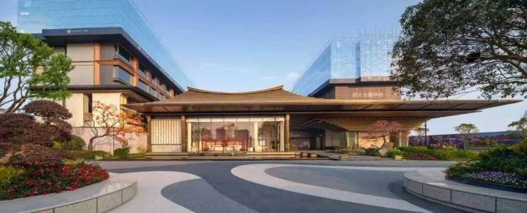 建筑风格方面,洋房采用诗意东方风格,外立面采用石材基座+三面大面铝板,搭配中式飞檐造型,与钱江潮涌奔腾之感相互辉映,在城市天际线勾勒出跃动的韵律。