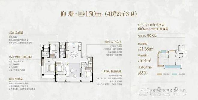 洋房产品也非常可圈可点,户型140㎡起步,全部都是大四房,得房率非常高。
