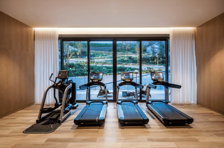在B1层会所空间将蓝色、绿色、红色大胆搭配,性感且有张力,在此跑步的同时还可以欣赏“仲夏夜之梦”英式园林。