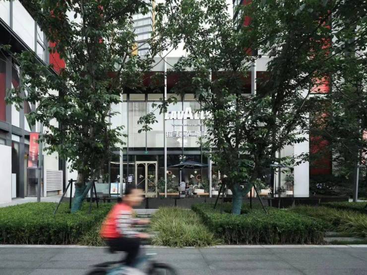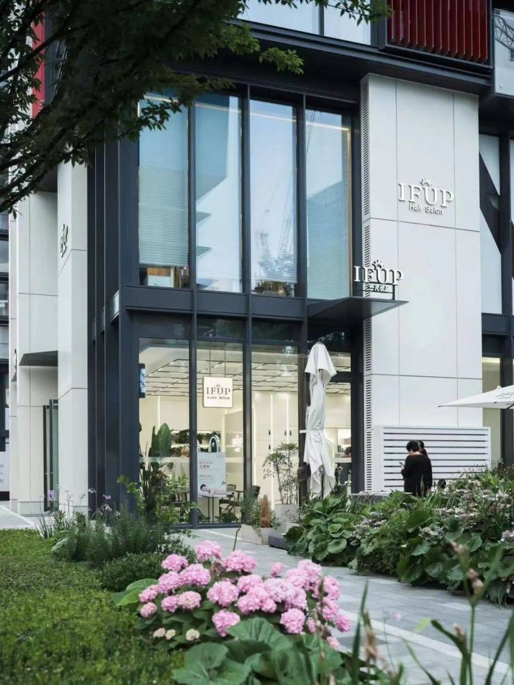 极具辨识度的 红黄渐变外立面、 270°转角无柱落地窗完美呈现,哪怕在春日不够耀眼的光线下,整个建筑仍折射出极有光泽的细节变幻。