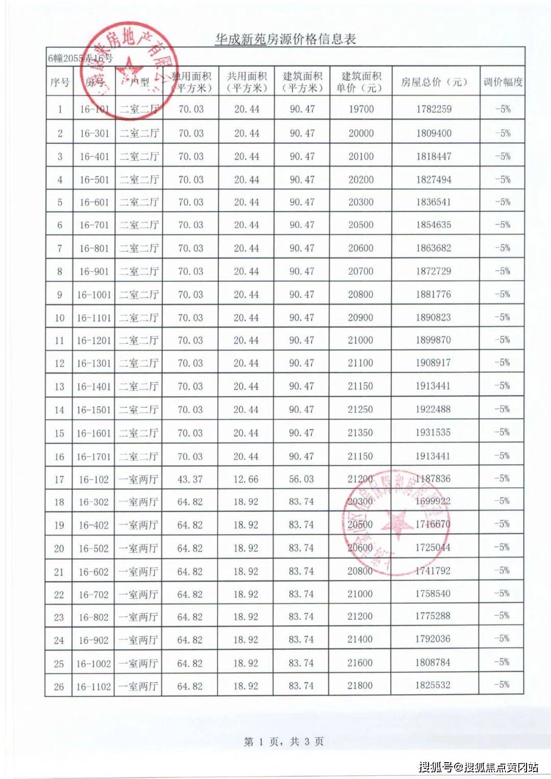 一房一价表: