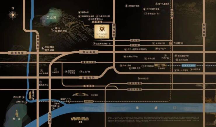 项目择址国家 4A 级超山风景区脚下,占位临平东湖新城核芯,秋石高架、望梅高架纵横交织,快速通达武林广场、杭州东站、钱江新城、奥体新城等主城核心区,兼得山水静谧与都市繁华。